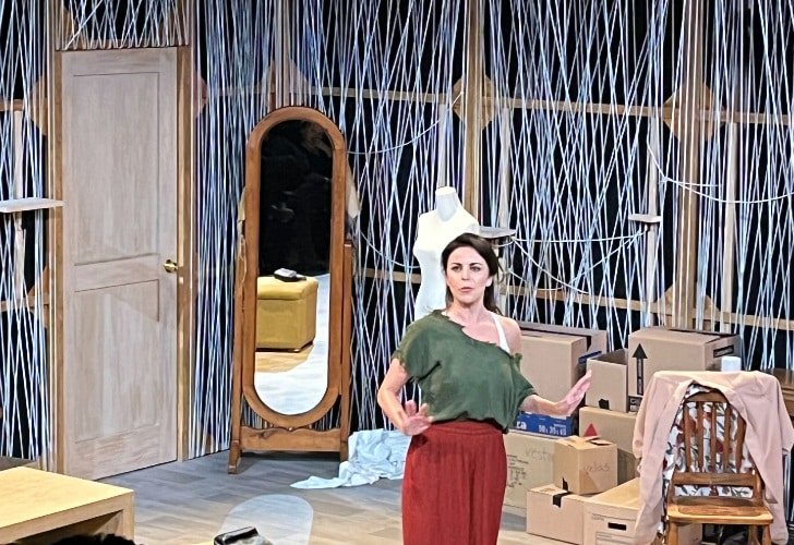 En un escenario minimalista donde cuelgan por todas partes los hilos de estambre como metáfora perfecta de los hilos de la vida que Ema no atina a tomar en sus manos, la actriz nos atrapa desde la primera línea cuando mirándose al espejo grita: “Soy un asco”.