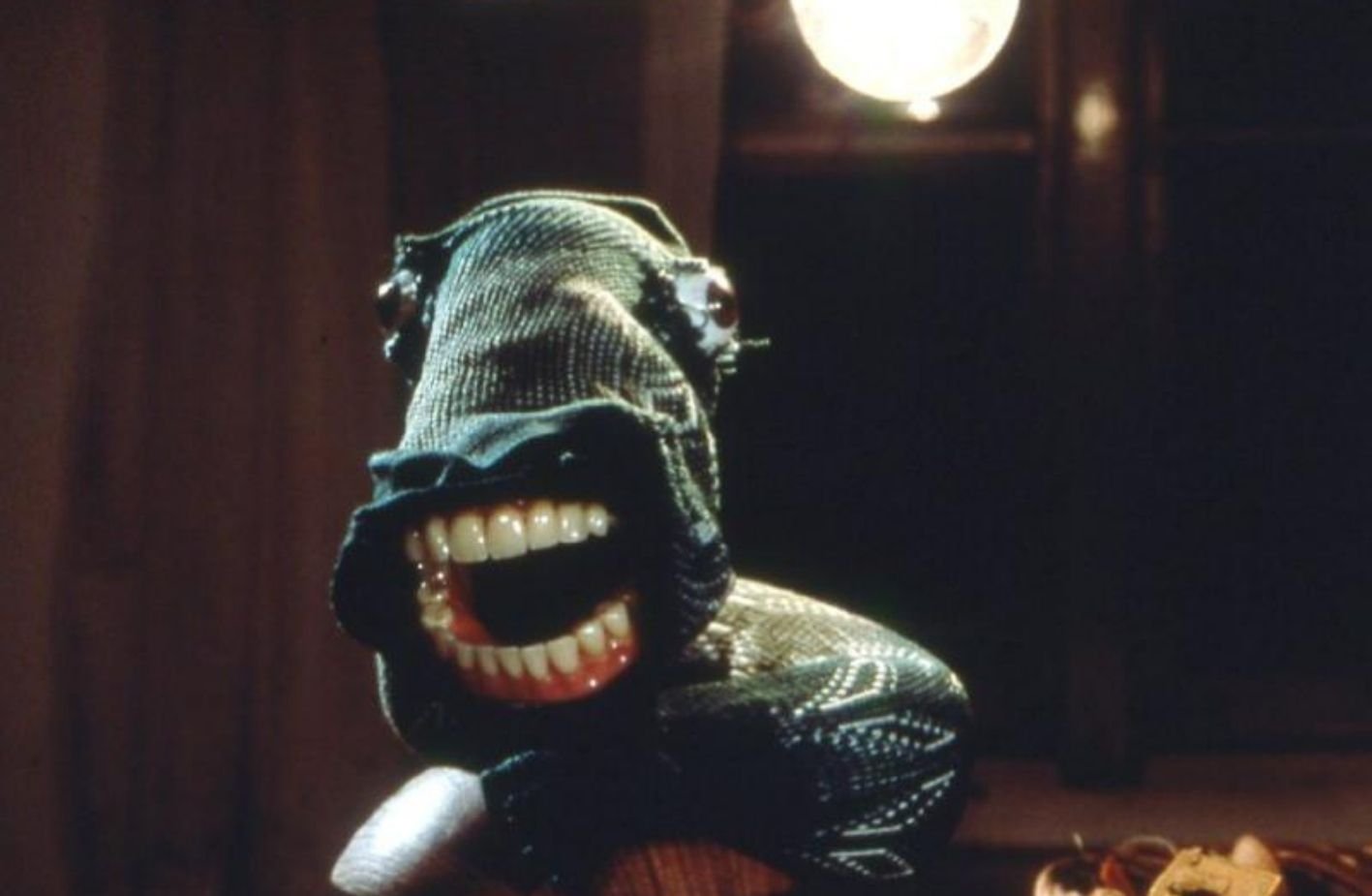 El formato 4:3, ya anticuado en 1988, encierra a la niña en un gabinete de objetos y taxidermias. La sensación claustrofóbica refuerza el efecto de teatro de marionetas.