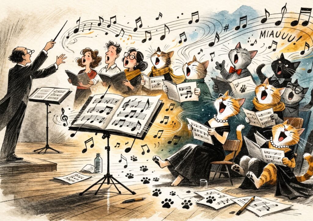 Después de unos cuantos maullidos —primero individuales, luego colectivos— un grupo entero podía sincronizarse de repente.