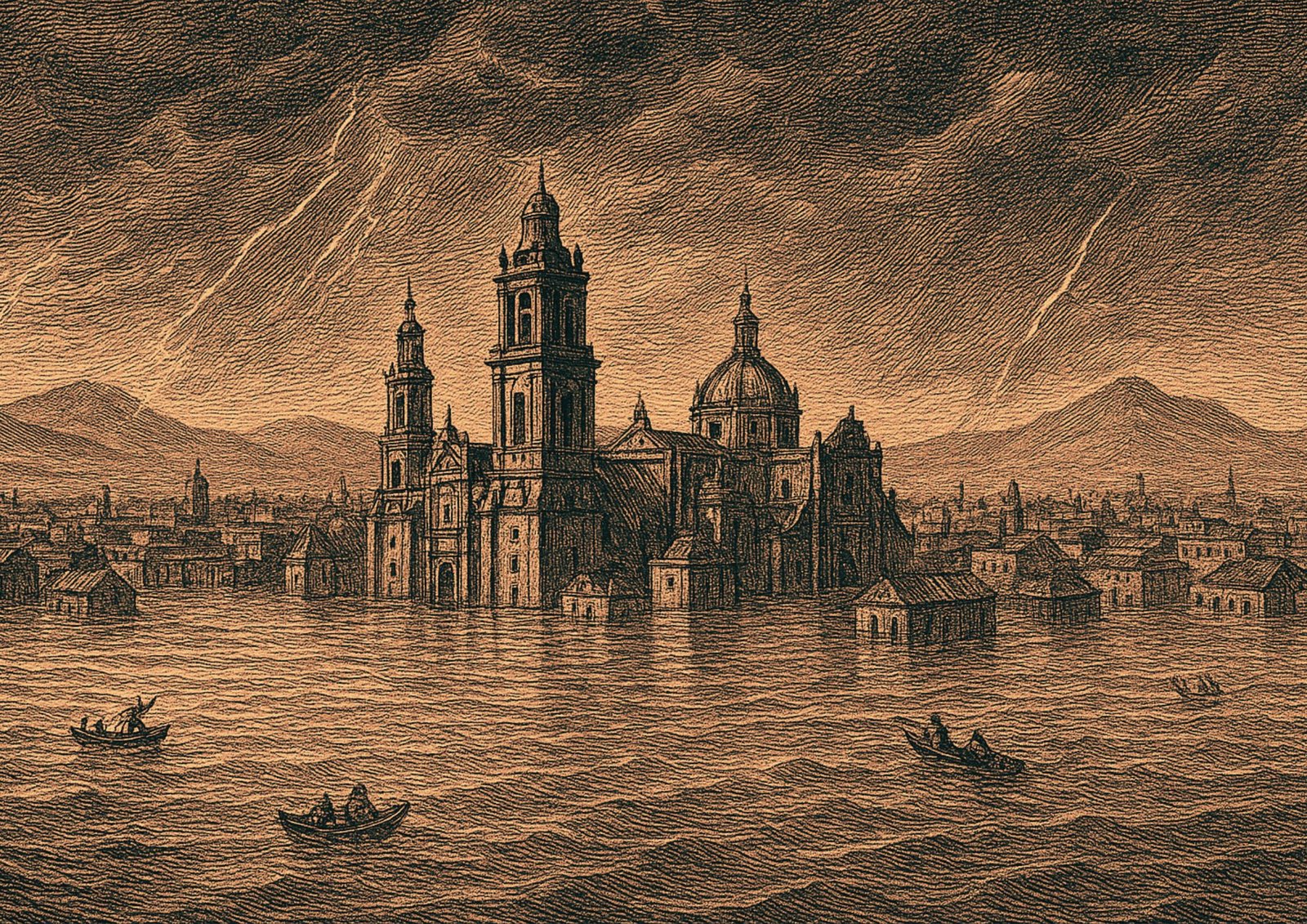 No se preguntaron si era sabio edificar una ciudad europea sobre un lago. Quizá les cegó el poder, quizá la idea de borrar el pasado para levantar algo nuevo. Con escombros rellenaron canales; con árboles talados mal cimentaron sus edificios. La tierra, resentida, comenzó a hundirse. El agua, confinada por diques imperfectos, buscaba su camino. Y cuando llovía, la ciudad se inundaba, una y otra vez, como un recordatorio de su error.
